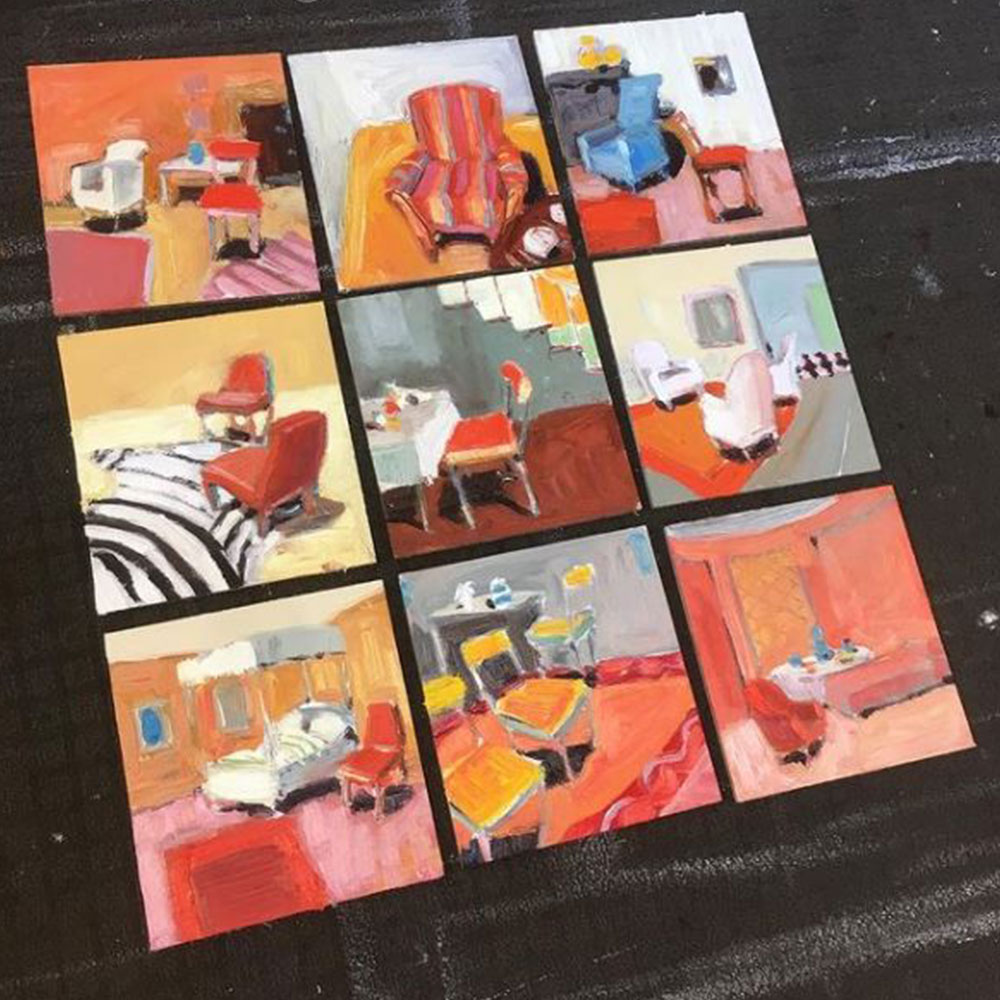 I really can’t tell. I’ll definitely still be painting, but who knows what else. The wonderful thing about the creative process is that you never know where it is going to take you. Over the last few months I’ve been visiting other artists’ studios, making works based on their creative spaces – it’s fascinating what you can find in an artist’s studio. There’s no better subject matter for me than a creative space filled with all sorts of weird and wonderful things. I’ll be having some of the works from these series on show at Michael Reid Northern Beaches in April.